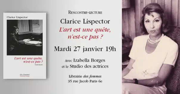 Soirée autour de L’art est une quête, n’est-ce pas ? de Clarice Lispector présenté par Izabella Borges, traductrice, et lecture par trois comédiennes du Studio des actrices.