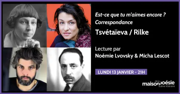 Noémie Lvovsky et Micha Lescot feront une lecture de Est-ce que tu m’aimes encore ? Correspondance de Marina Tsvétaïeva et Rainer Maria Rilke.