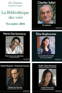 En 1980, Antoinette Fouque crée la première collection de « livres parlants » Écrire, entendre qui deviendra plus tard La Bibliothèque des voix. Pionnière en France, la collection se compose aujourd’hui de près de 130 titres choisis parmi les grands textes du patrimoine culturel français et international et lus par de grandes voix.