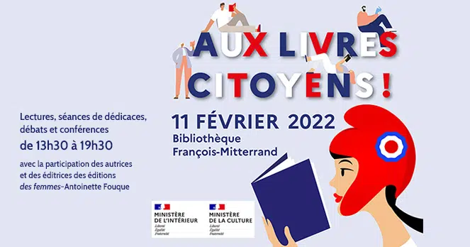 Première édition du festival du livre engagé, Aux livres citoyens !, pensé et organisé par la ministre délégué à la Citoyenneté, Marlène Schiappa avec les Ministère de l’Intérieur et Ministère de la Culture. Les Éditions des femmes-Antoinette Fouque participent au lancement de ce festival et vous invitent à plusieurs rencontres.